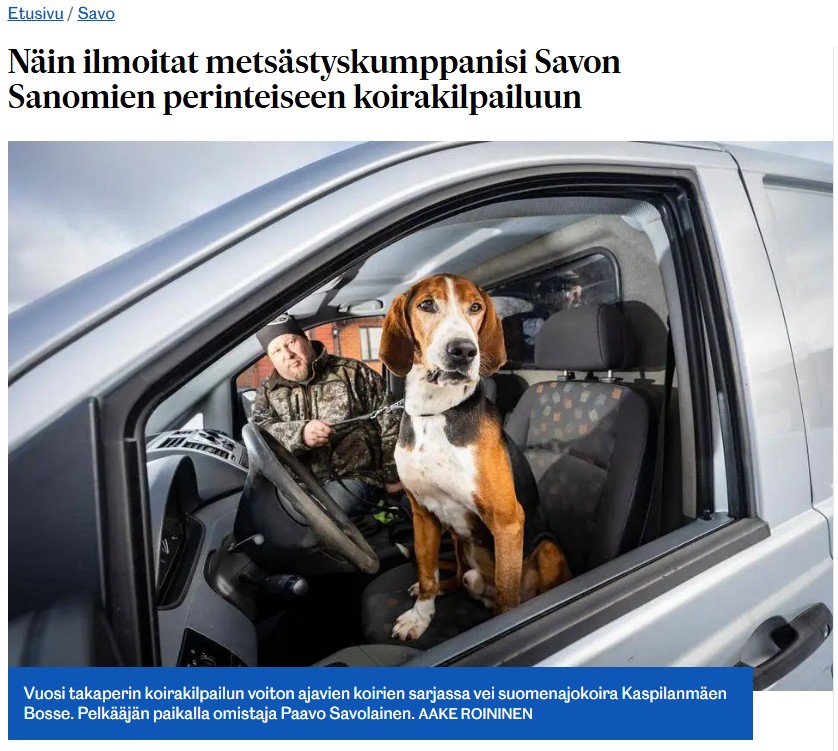 Savon Sanomien perinteinen metsästyskoirille tarkotettu koirakilpailu on porskuttanut jo vuodesta 1972. Jälleen karvaiset kaverit ovat kilpasilla, ja ilmoittautumisia otetaan vuoden 2025 osalta vastaan.