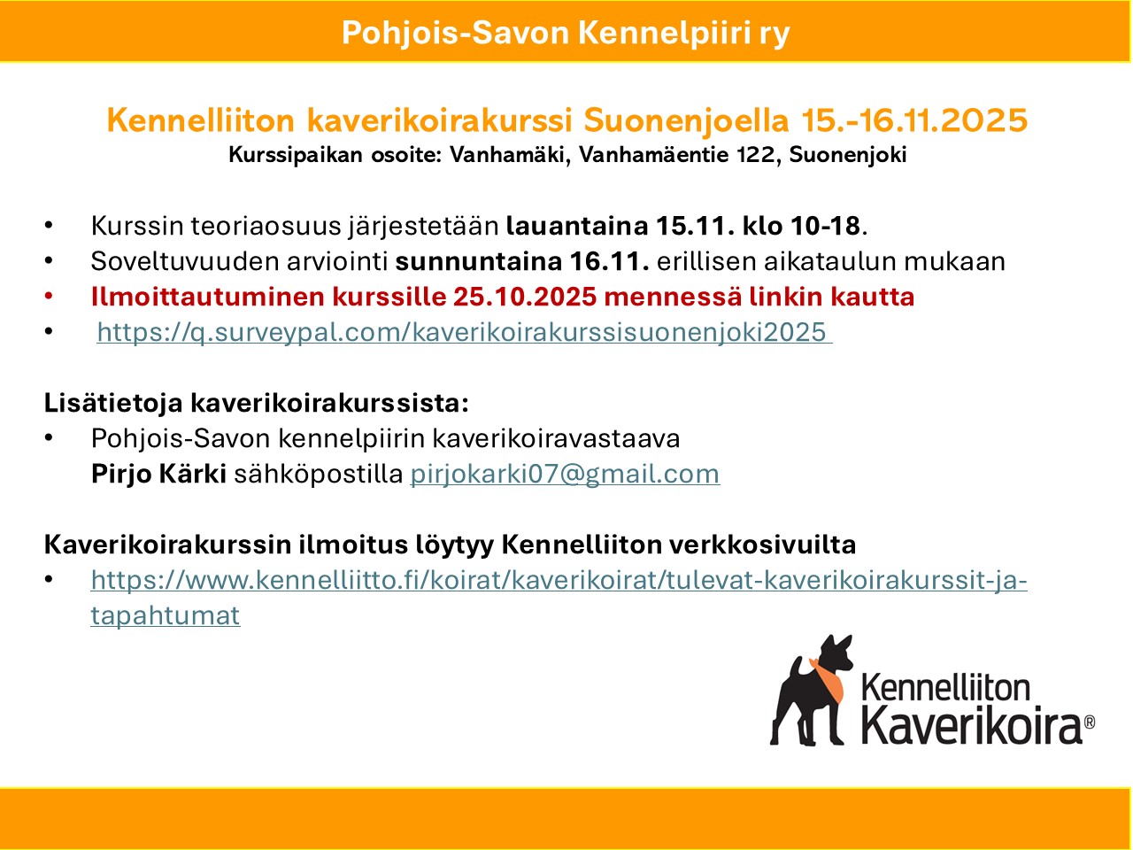 Nettisivujen ylläpito ja päivitykset: sihteeri (at) pohjois-savonkennelpiiri.fi. Kehätoimitsijaluettelon päivitykset hoitelee: vahakoski.sari (at) gmail.com