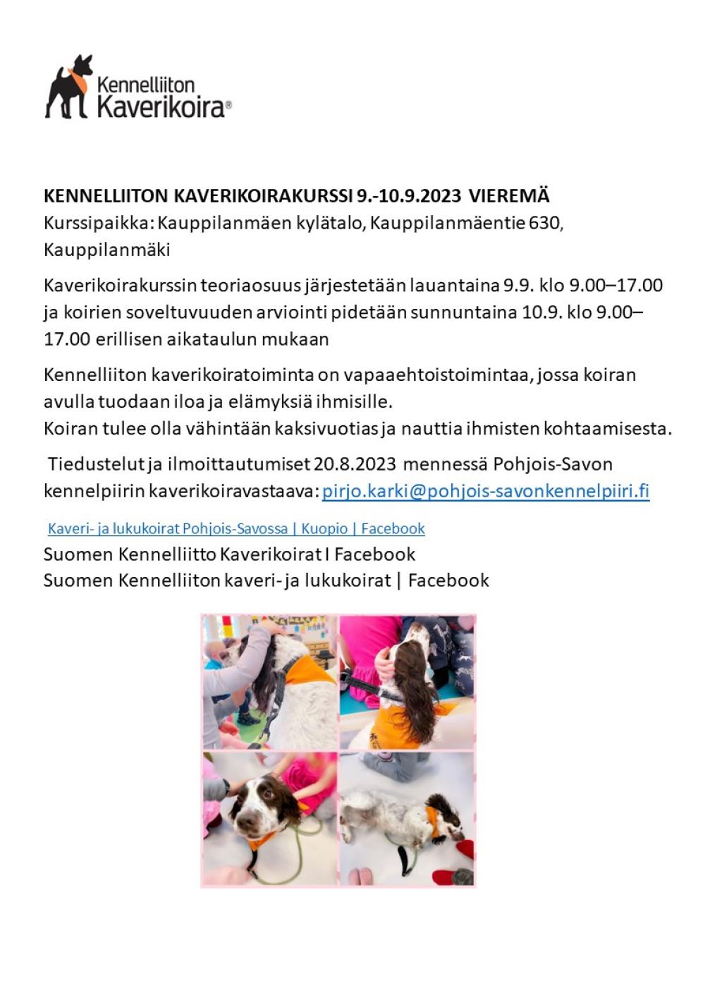 23.10.2023 Kennelliiton Kaverikoirakurssi Kuopiossa 6.-7.1.2024