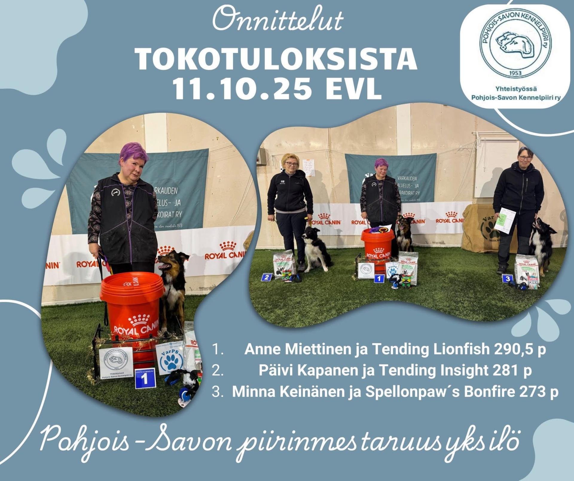 11.10. VarPS Areenalla kisattiin tokon Pohjois-Savon piirinmestaruuksista niin joukkueiden kuin yksilöiden (EVL). Kiitos tuomareille Marjo Halmiala ja Satu Kokko. Onnea uusille yksilö- ja joukkuekilpailujen Piirinmestareille. Kilpailujen järjestelyistä vastasi vankalla kokemuksellaan VarPS. Josta heille suuri kiitos, kisat oli suunniteltu ja järjestetty erinomaisesti. Kuvat: VarPS fb