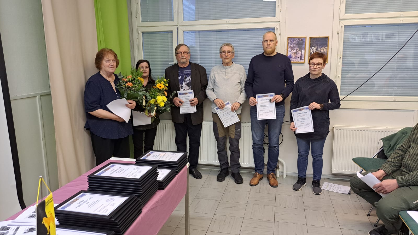 Kokouksen alkuun kuultiin Kennelliiton ajankohtaiset terveiset, jotka meille toi kennelliiton hallituksen jäsen Kari Leppänen. Ennen varsinaisen vuosikokouksen alkamista suoritettiin runsaslukuiset muistamiset ja palkitsemiset.